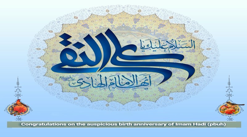 Congratulations on the auspicious birth anniversary of Imam Hadi (pbuh)