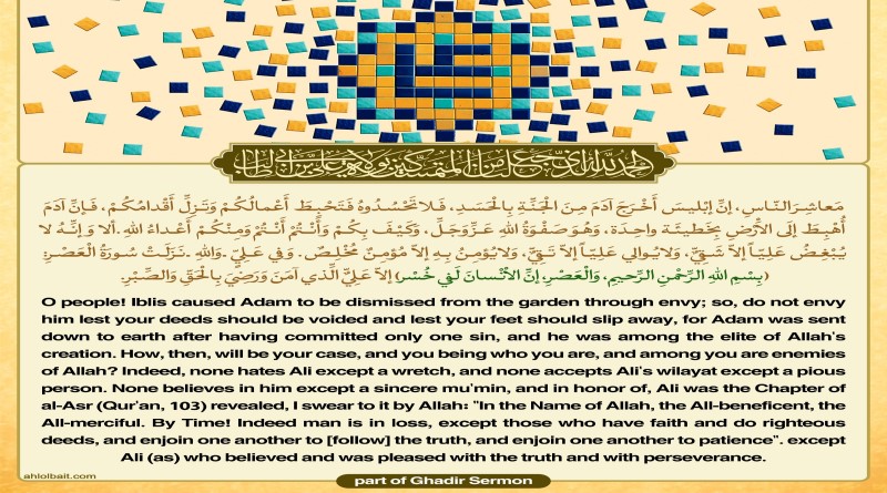 O people! Iblis caused Adam to be dismissed from the garden through envy; so, do not envy him lest your…