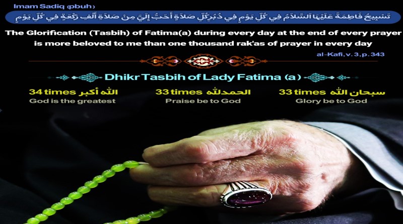 Imam Sadiq (pbuh) تسْبِيحُ فَاطِمَةَ عَلَيْهَا اَلسَّلاَمُ فِي كُلِّ يَوْمٍ فِي دُبُرِ كُلِّ صَلاَةٍ أَحَبُّ إِلَيَّ مِنْ صَلاَةِ أَلْفِ رَكْعَةٍ…