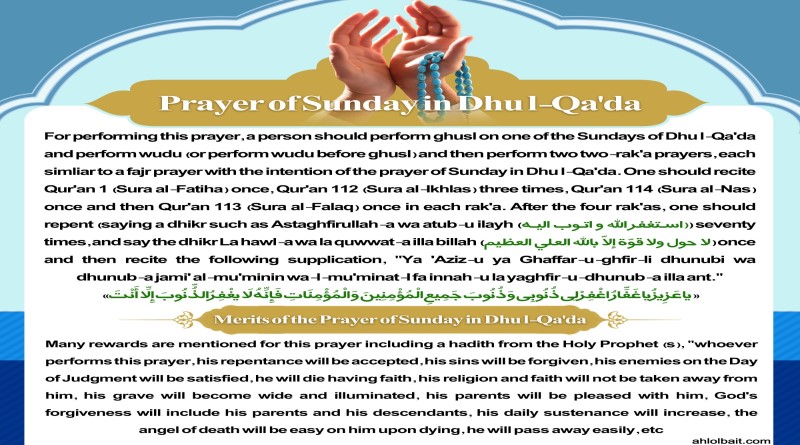 Prayer of Sunday in Dhu l-Qa’da For performing this prayer, a person should perform ghusl on one of the Sundays…