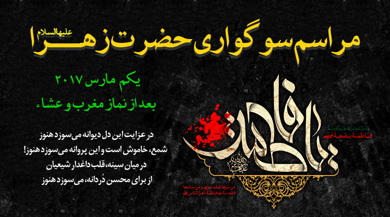 مراسم سوگواری شهادت حضرت زهرا یکم ماه مارس بعد از نماز مغرب و عشاء در مسجد امام علی علیه السلام برگزار می…