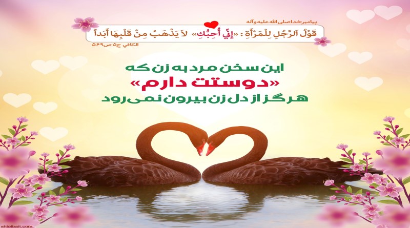 پيامبر خدا صلى الله عليه و آله قوْلُ اَلرَّجُلِ لِلْمَرْأَةِ : «إِنِّي أُحِبُّكِ» لاَ يَذْهَبُ مِنْ قَلْبِهَا أَبَداً اين سخن…