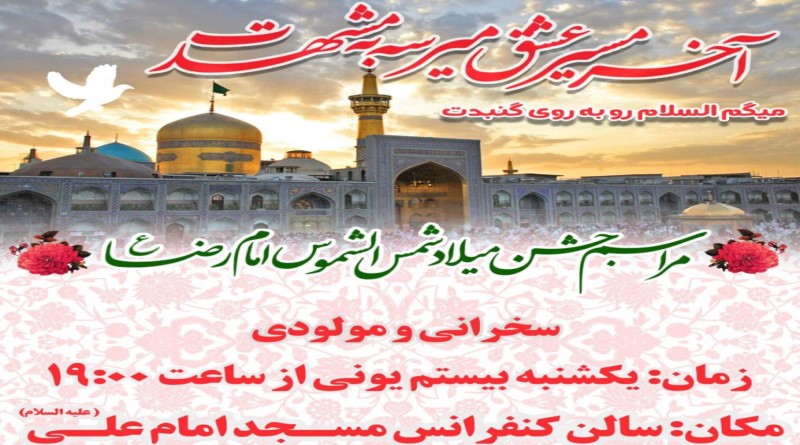 مراسم جشن میلاد شمس الشموس امام رضا علیه السلام سخنرانی و مولودی زمان: یکشنبه بیسم یونی از ساعت 19 مکان:…