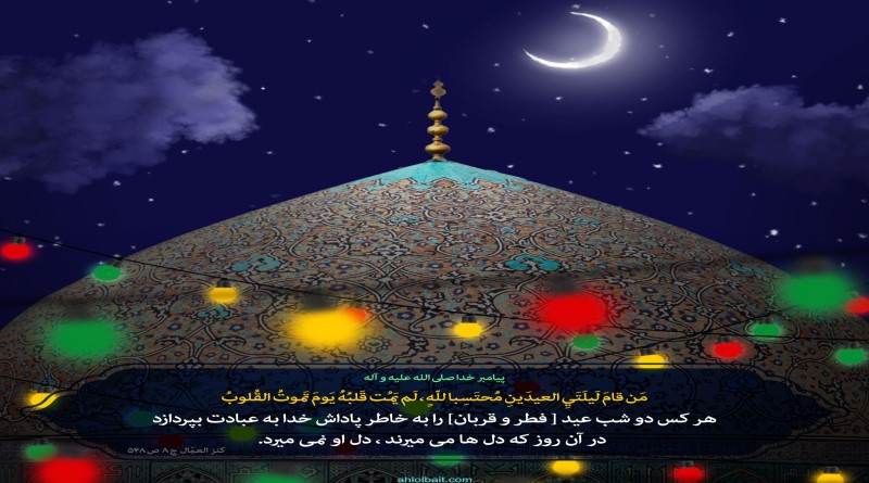 پيامبر خدا صلى الله عليه و آله و سلم من قامَ لَيلَتَيِ العيدَينِ مُحتَسِبا للّه ِِ ، لَم يَمُت قَلبُهُ…