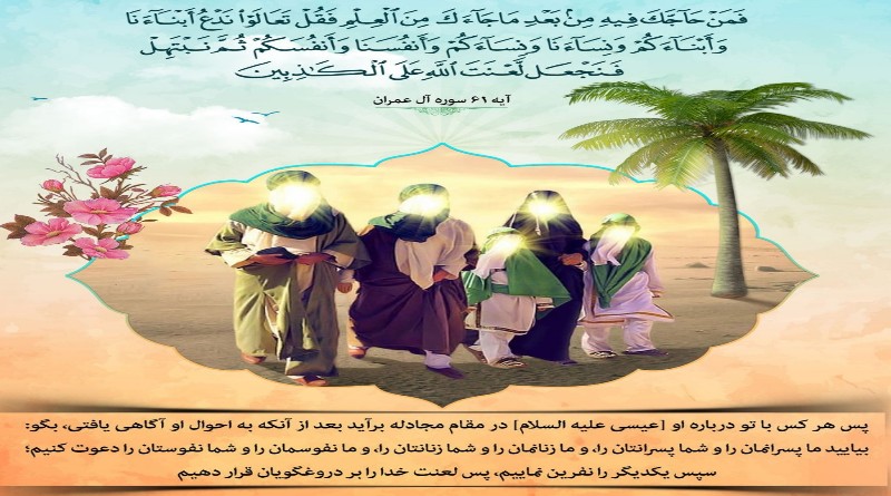فمَنْ حَاجَّكَ فِيهِ مِنْ بَعْدِ مَا جَاءَكَ مِنَ الْعِلْمِ فَقُلْ تَعَالَوْا نَدْعُ أَبْنَاءَنَا وَأَبْنَاءَكُمْ وَنِسَاءَنَا وَنِسَاءَكُمْ وَأَنْفُسَنَا وَأَنْفُسَكُمْ ثُمَّ نَبْتَهِلْ…