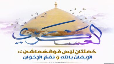 الإمام الحسن العسكري عليه السلام خصْلَتَانِ لَيْسَ فَوْقَهُمَا شَيْءٌ: اَلْإِيمَانُ بِاللَّهِ وَ نَفْعُ اَلْإِخْوَانِ تحف العقول ص489 ميلاد سعيد للإمام…