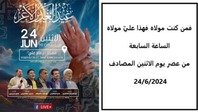 برنامج عيد الغدير 🌹بِسْمِ اللهِ الرَّحْمنِ الرَّحِيمِ( فمن كنت مولاه فهذا عليّ مولاه ) بمناسبة عيد الغدير الأغر ذكرى تتويج…