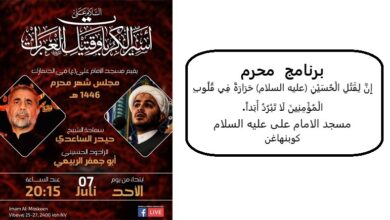 مجلس عزاء بسم الله الرحمن الرحيم بمناسبة ذكرى شهادة الإمام جعفر بن محمد الصادق (علیه السلام ) يقيم مسجد الإمام…