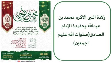 بمناسبة ولادة النبی الأکرم محمد بن عبداللّه وحفیدة الإمام الصادق(صلوات الله علیهم اجمعین) يقيم مسجد الإمام علي حفلاً بهیجاًعریف الحفل:…